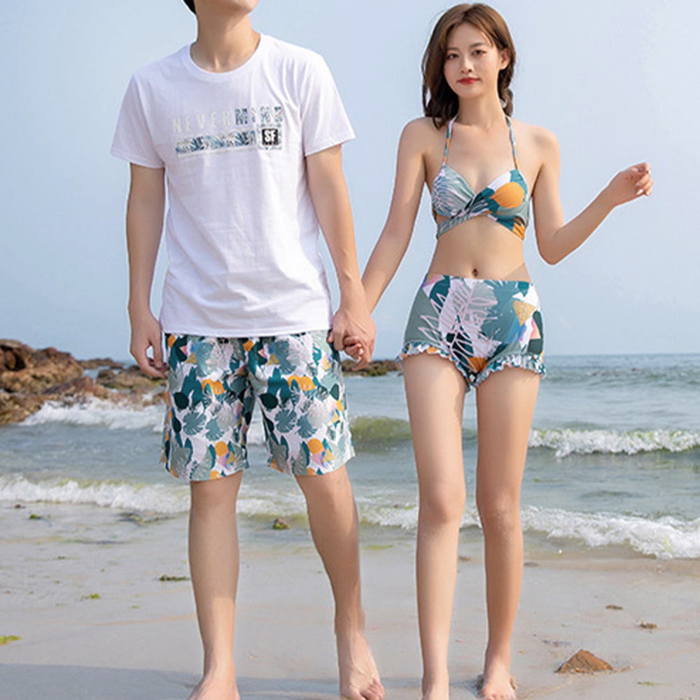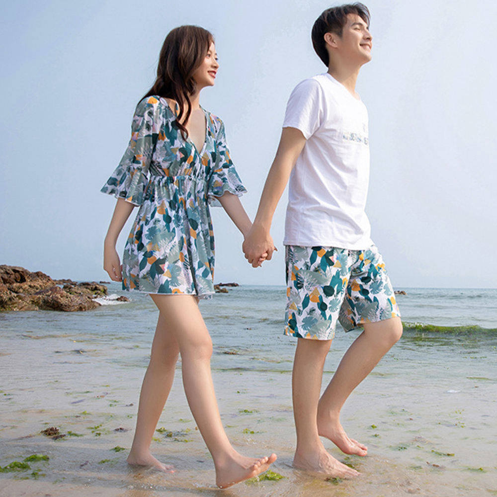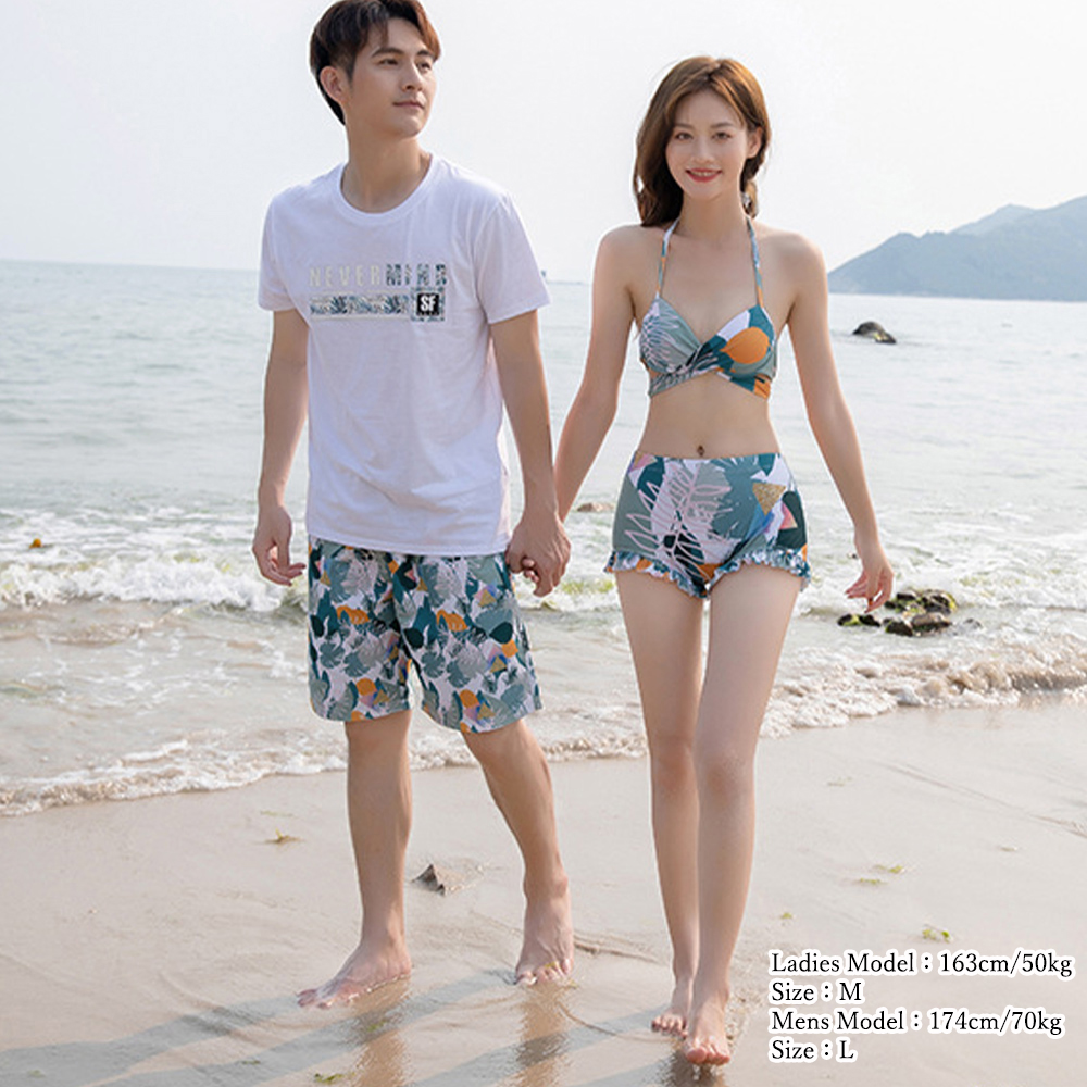 新婚旅行やリゾート地でのデートにぴったりの花柄ペア水着です。