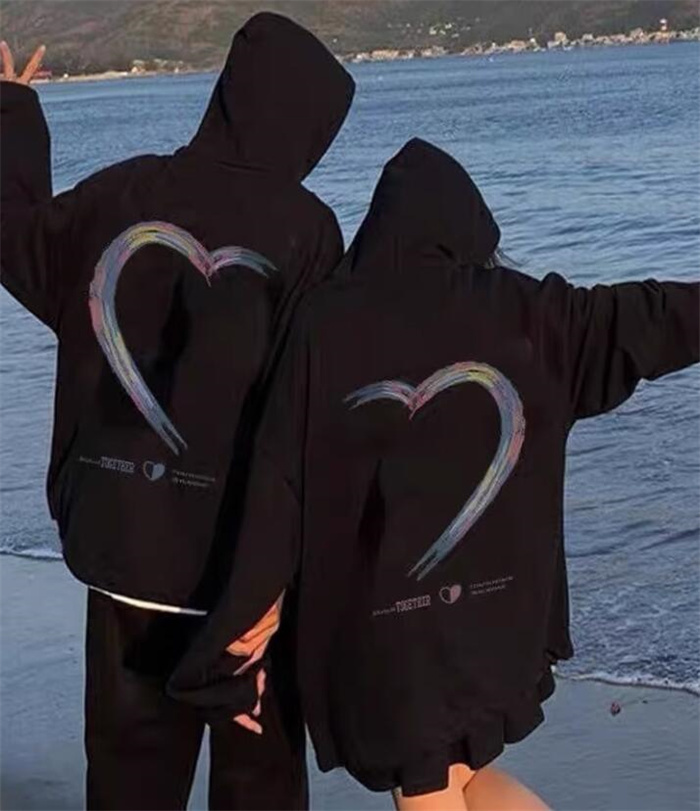 愛し合うカップルにぴったりのハート柄パーカーペアルックです。
